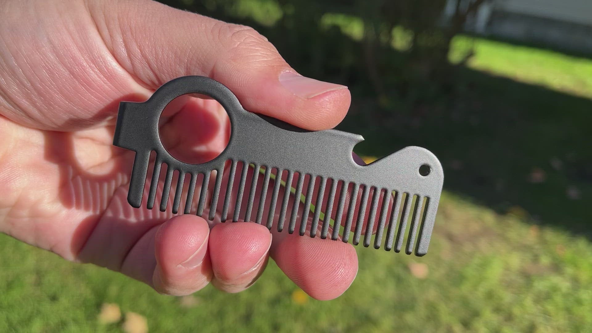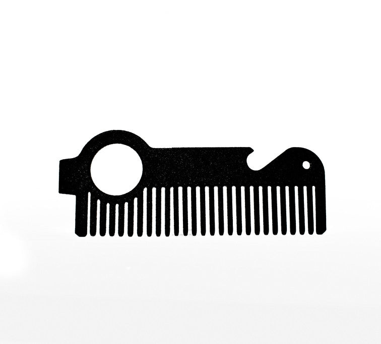 The Executor Mini is just like its bigger brother, but only 3.75” long with the incorporated bottle opener! Laser cut from T304 Stainless Steel, and then finished with our premium coating that provides an ultra smooth glide thru your hair or beard without irritating your skin. Measuring just 3 3/4” x 1 1/4" (1 1/2" at ornament hole) this comb fits perfectly into your "Watch Pocket", you know that extra little pocket in your jeans right above your normal pocket. Back in the 1800s, cowboys used to wear their watches on chains and kept them in their waistcosts. To keep them from getting broken, Levis introduced this small pocket where they could keep their watch. Now we have given a new purpose to this pocket, and its to keep your hair or beard looking good, and your HEIRCOMB tucked away nicely. Perfect to have with you when looking good, and popping bottles is a must.